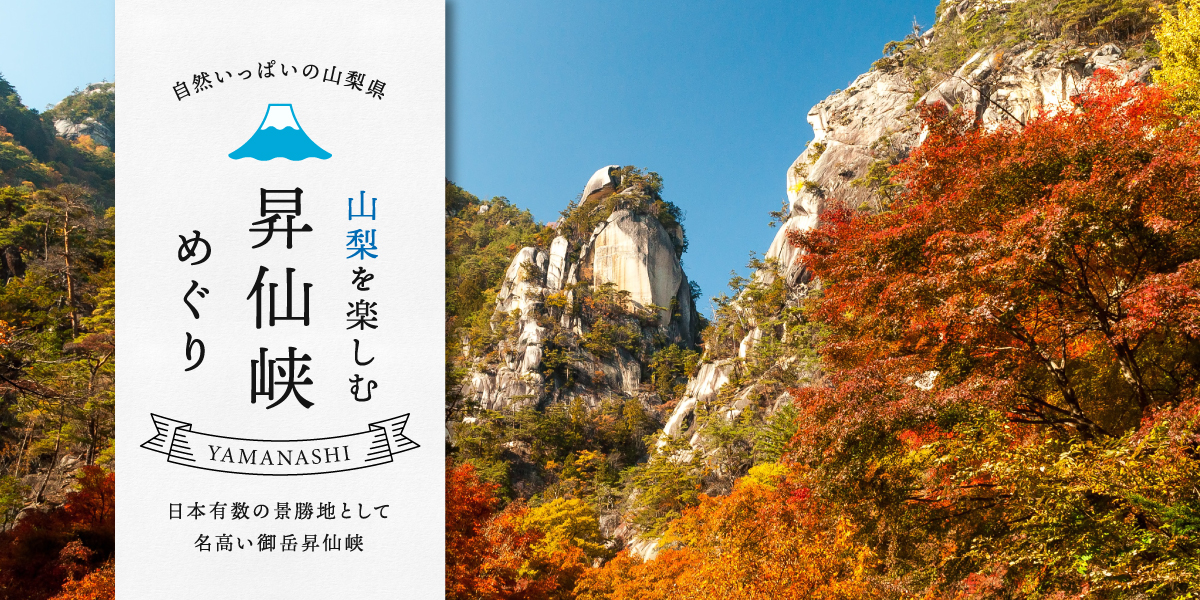 日本有数の景勝地として名高い御岳昇仙峡。露出した奇岩・怪石が群を擁し、通年で四季折々の変化に富んだ美しい景観が楽しめる。