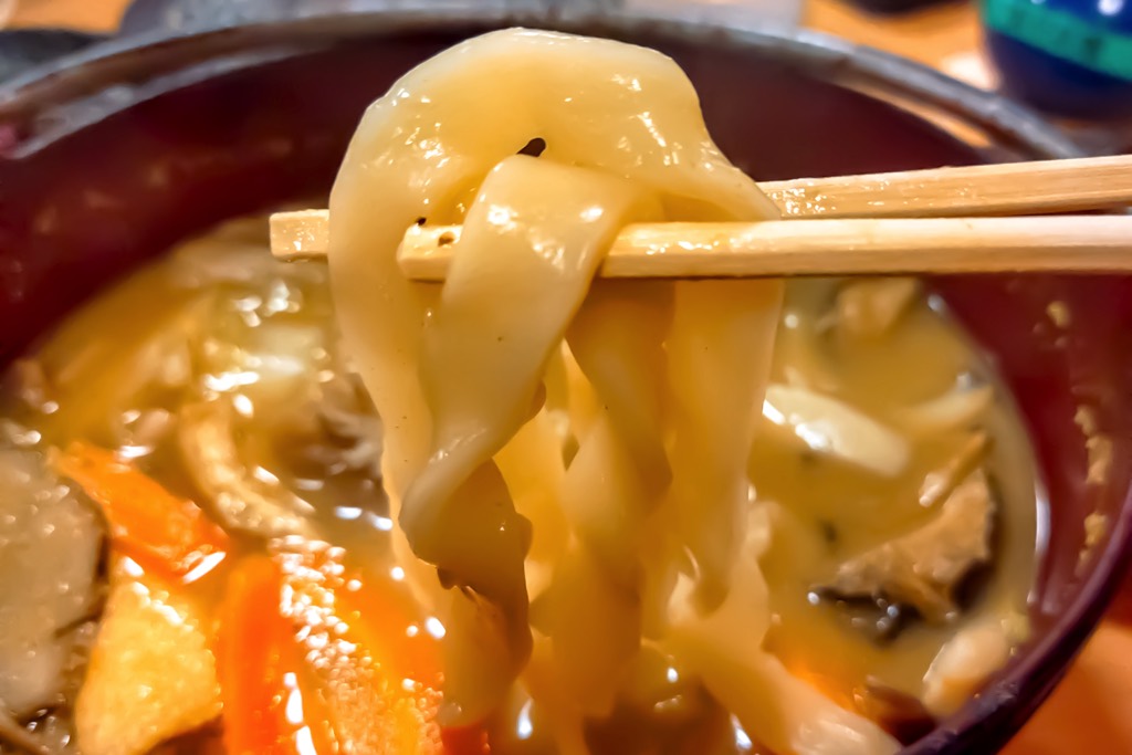 山梨県産の野菜がたっぷり入ったほうとうは、味噌ベースで栄養満点。(ほうとう…1,000円)1杯食べれば寒い外でも体がポカポカになりそうだ。気まぐれでオーナー手作りの昔ながらのこんにゃくが食べられることもあるんだとか。五感で楽しむこの秋だけの体験をマウントピア黒平で。