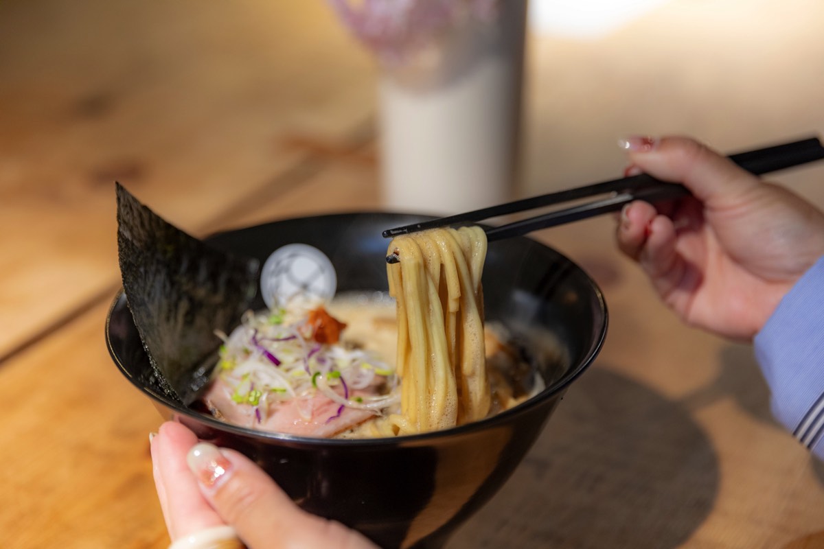 化学調味料を使わない天然素材の旨味溢れるスープと、店で毎日打つ自家製麺が織りなす美しすぎる無化調ラーメン。常に店主が “今感じる美味しい”を追求し、麺の配合やスープの脂の具合、出汁のバランスなどを試行錯誤する手をとめない。こだわりのとんこつしょうゆに泡立て乳化したクリーミーな味わいが広がり、しこっとした太麺がよく絡む。