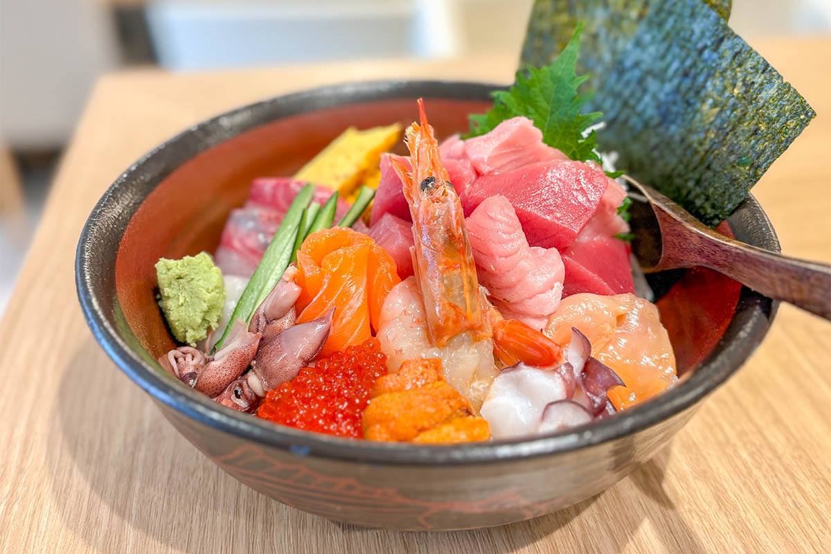 お得なランチの中でも店名を冠した海鮮丼は中トロ・赤身がこれでもか!と豪華にのる。さらにウニ・ホタテ・いくら・サーモン・イカ・ぶり・タコ・えびなど、10種類以上の海鮮が百花繚乱!ネタの美味しさもさることながら醤油にもこだわり、神戸から寿司に合う醤油をオーダーメイド。まろやかな香りや塩味でまるみのある味わいが絶品ネタを包む。