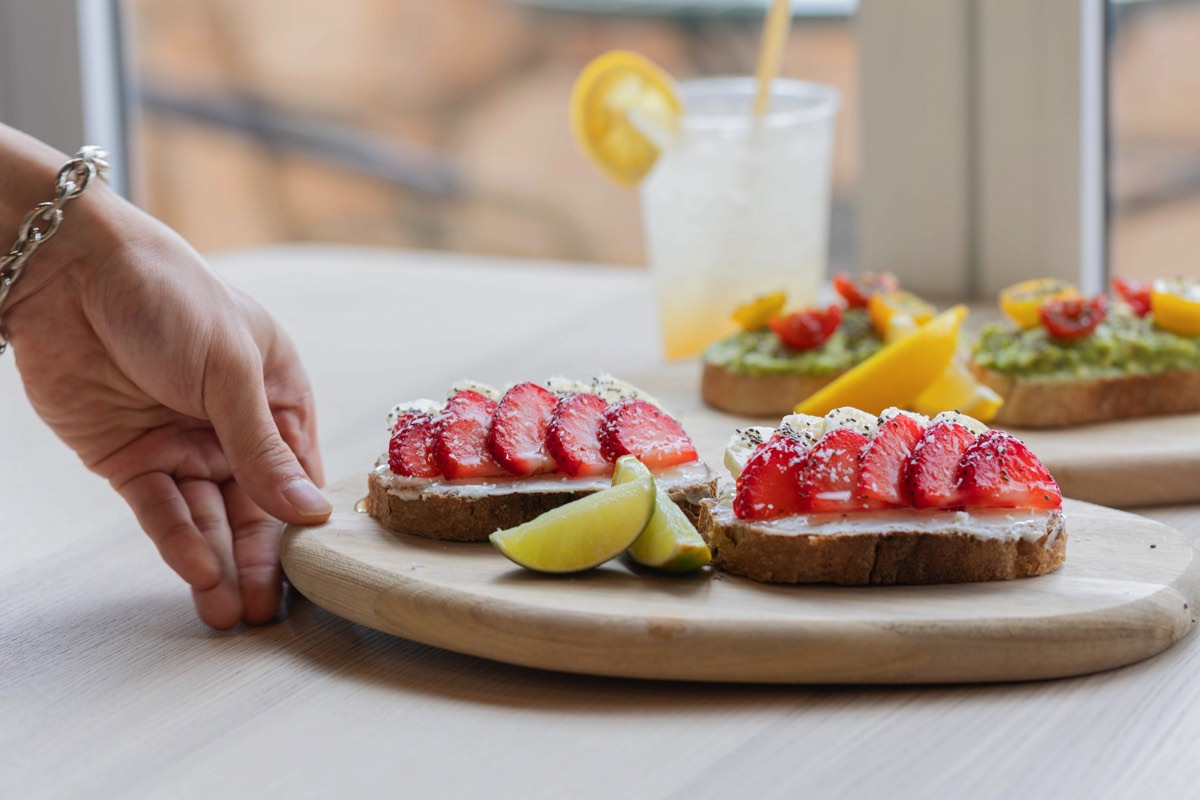こちらのトーストメニューは、かなりこだわっていて具材によってパンの種類を変えるという。甘い系には少しやわらかめのオーツ麦のパンを使用。イチゴ、バナナ、ブルーベリーのフルーツと、リコッタチーズの甘みと酸味をよりマイルドに感じられてスゴイ!!こんな上品で爽やかなスイーツ系トースト、食べたことない♡お食事系派には、カンパーニュを使用した「アボトースト」も。りんごジャムを隠し味にした、繊細でほのかにフルーティな味わいだ。