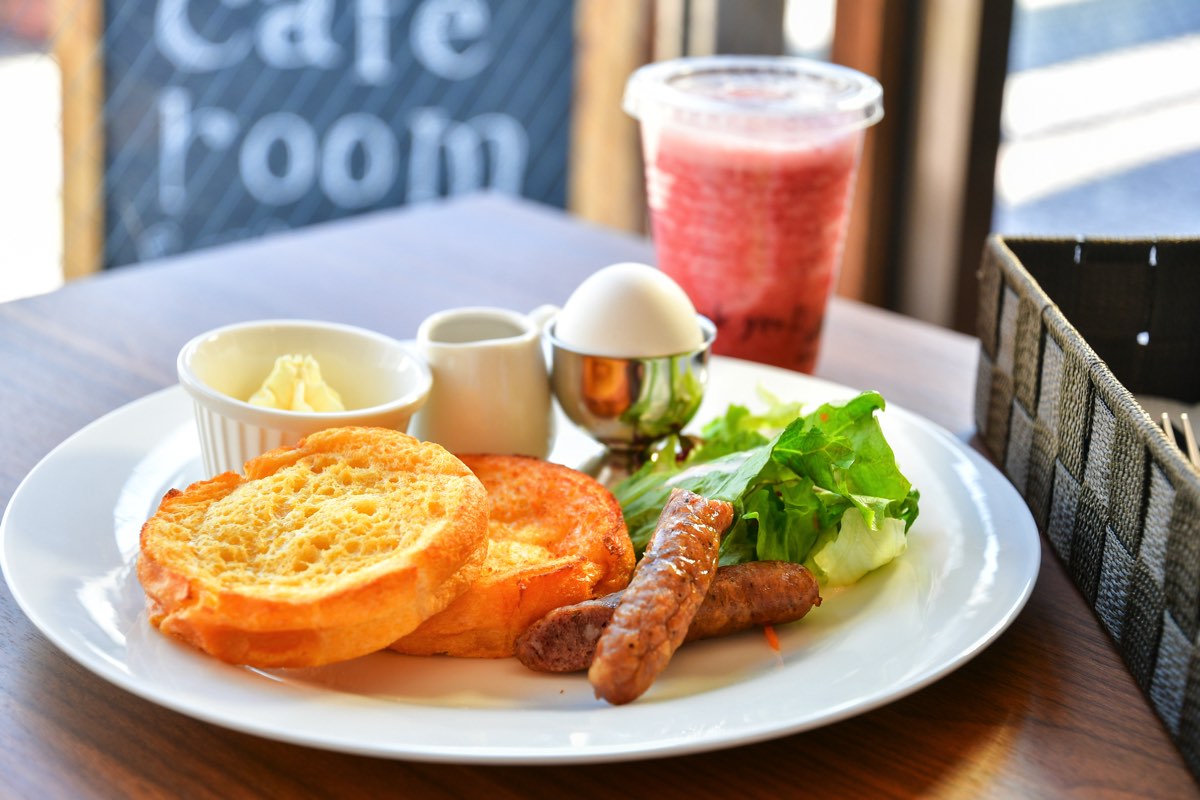 8時から12時までと、比較的モーニングタイムが長めで嬉しいと好評!中でも、好きなパン1種類を選び、味付ゆで卵・ソーセージ・サラダ・好きなドリンクが付く「マイカフェセット」は栄養バランスもボリューム感もよく、人気が高い。