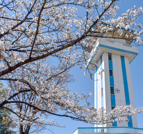 周辺の地元民ならおなじみの赤坂台総合公園。実は春になると桜はもちろん、色とりどり花が咲き誇る。高さ33メートルの展望塔からは、富士山や南アルプス、八ヶ岳連峰が一望でき、上から見下ろす桜もまた絶景。木製遊具や石の滑り台、水遊びができる噴水など子連れ人気が高いスポット。4月中旬頃には芝桜も楽しめる!