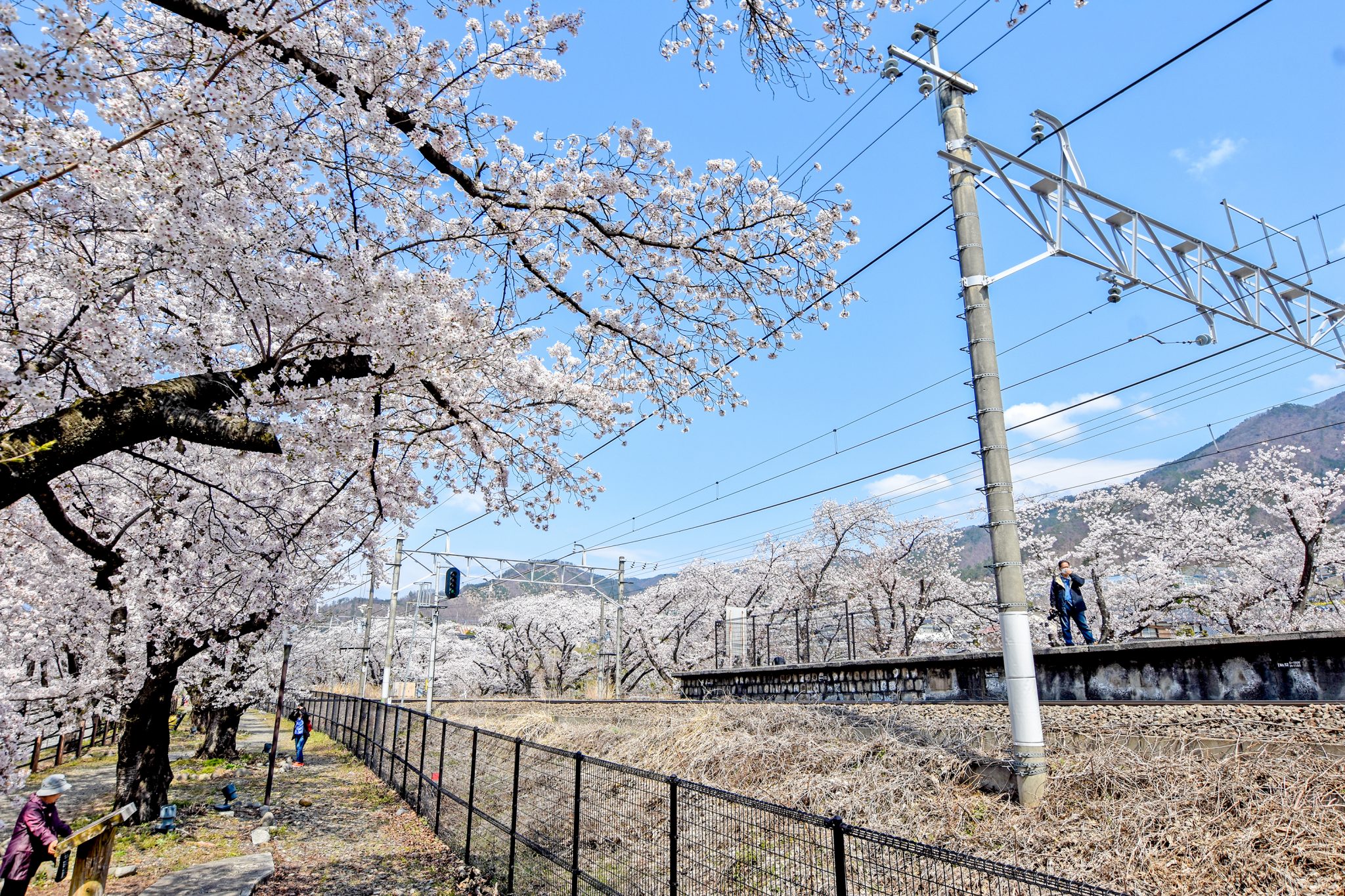 JR中央線の線路沿いにあらわれる桜のトンネルは必見!