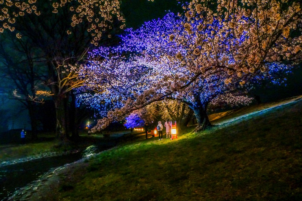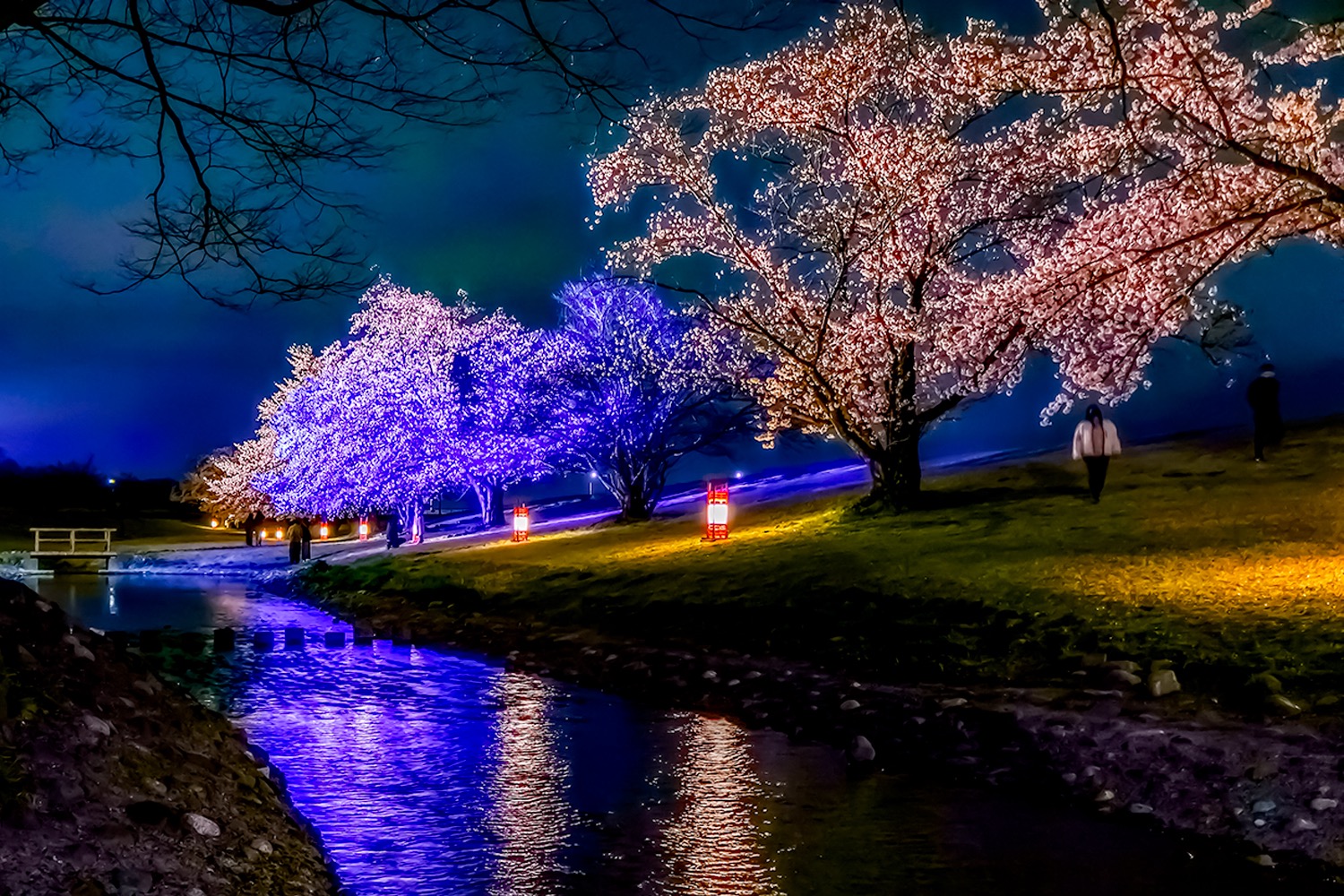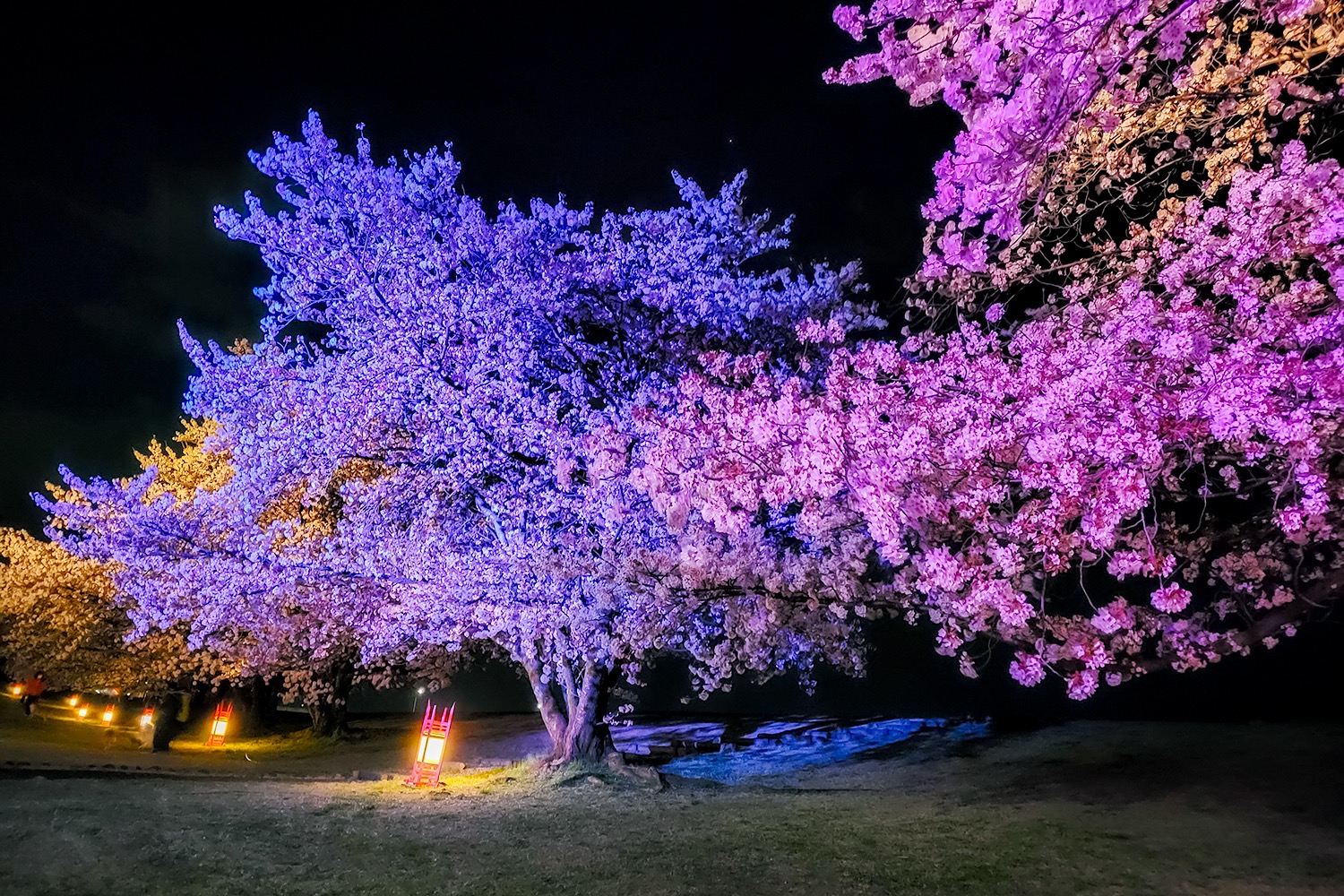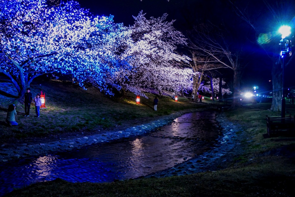 ライトアップもあり幻想的な夜桜の鑑賞スポットとしても人気で、毎年多くの人が訪れる。