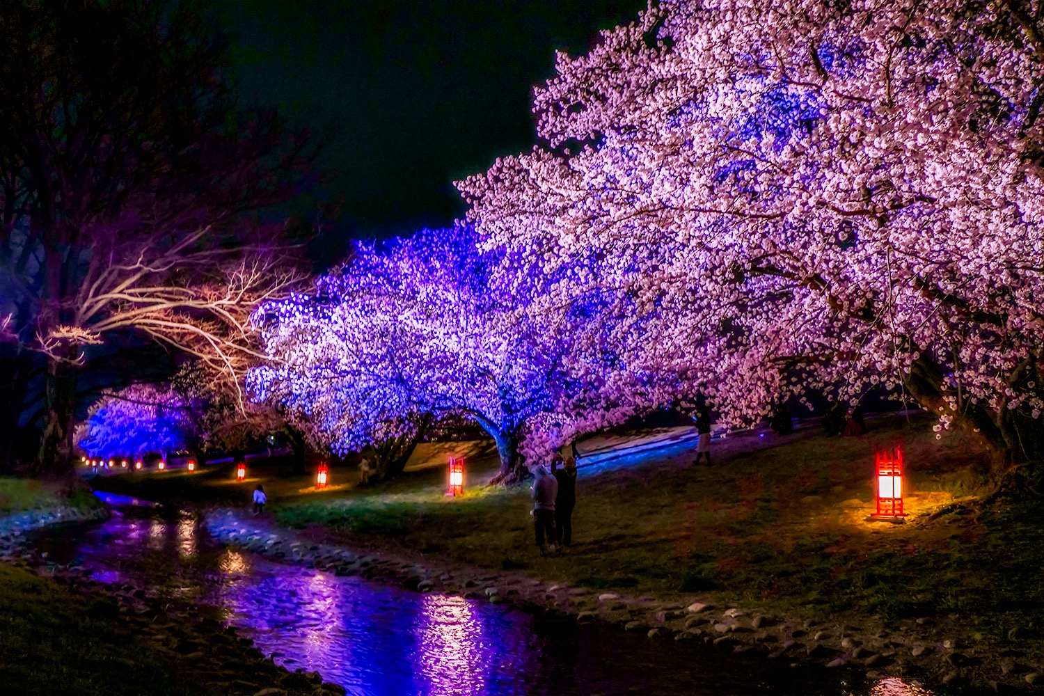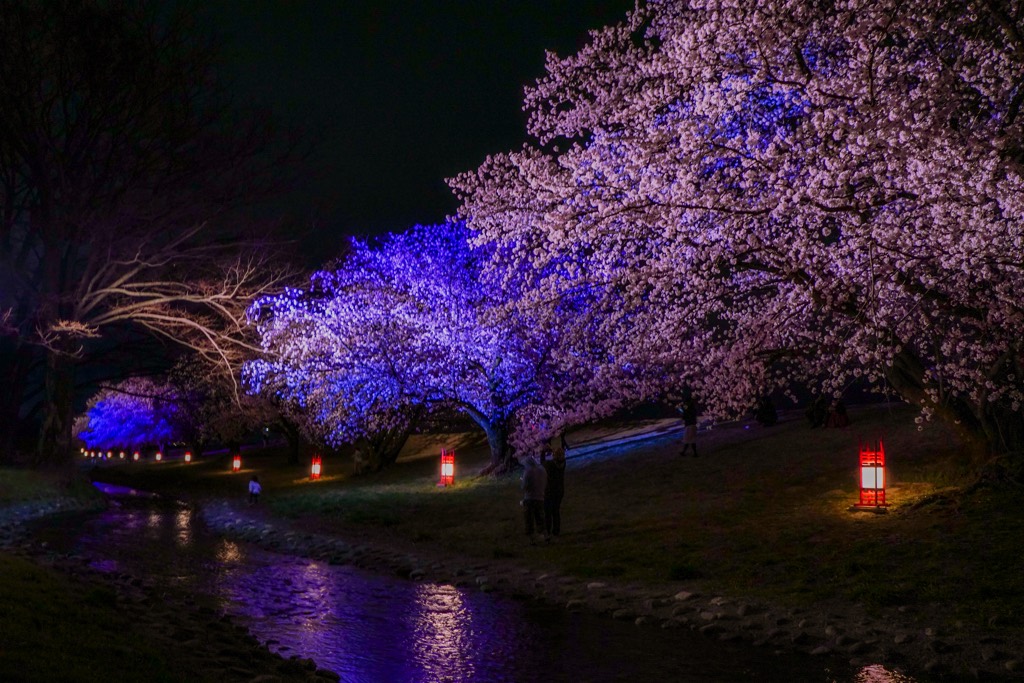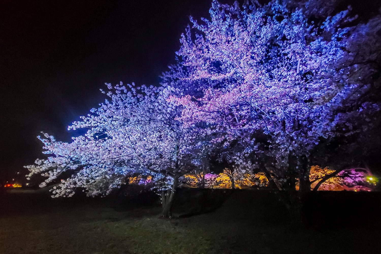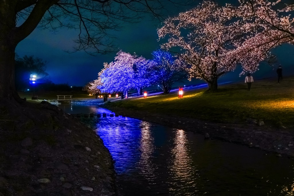 ライトアップもあり幻想的な夜桜の鑑賞スポットとしても人気で、毎年多くの人が訪れる。