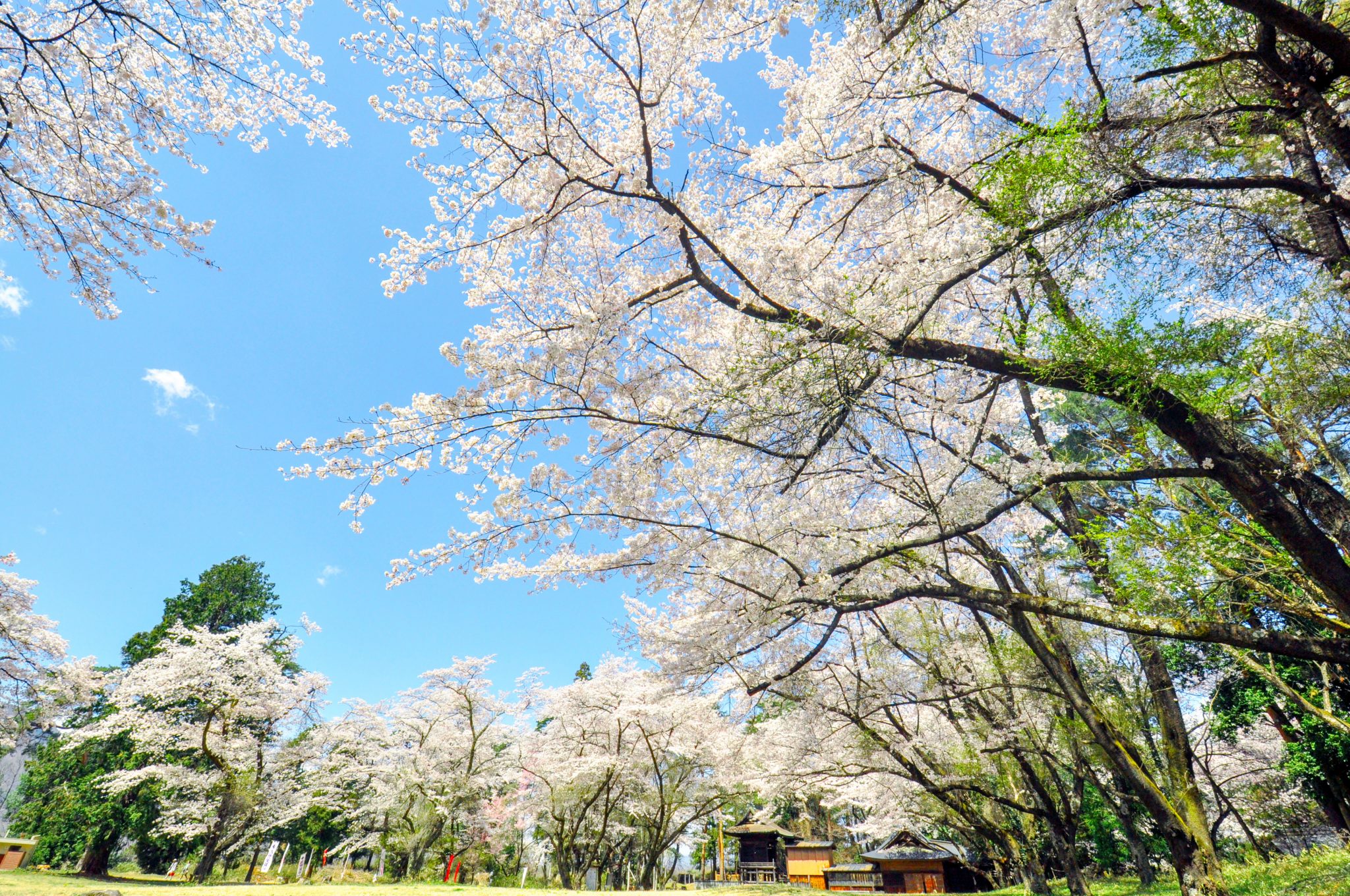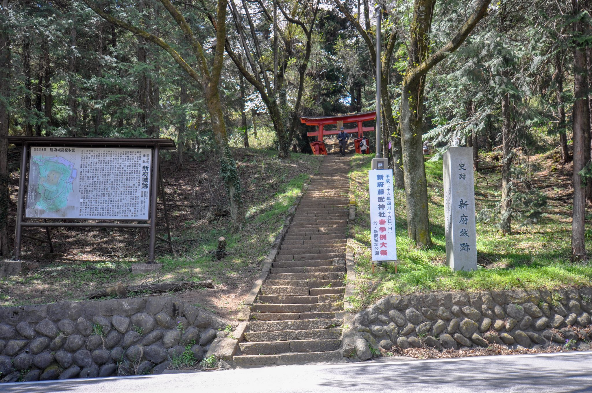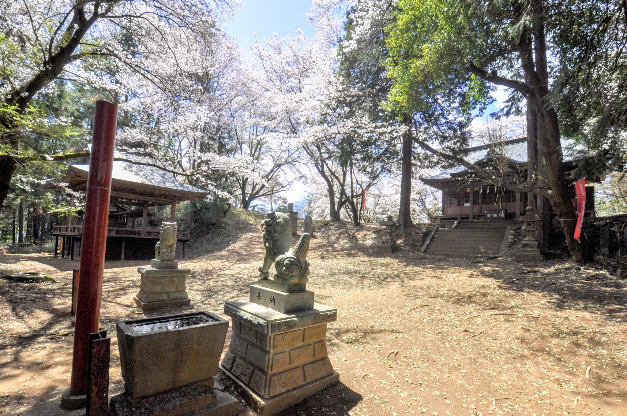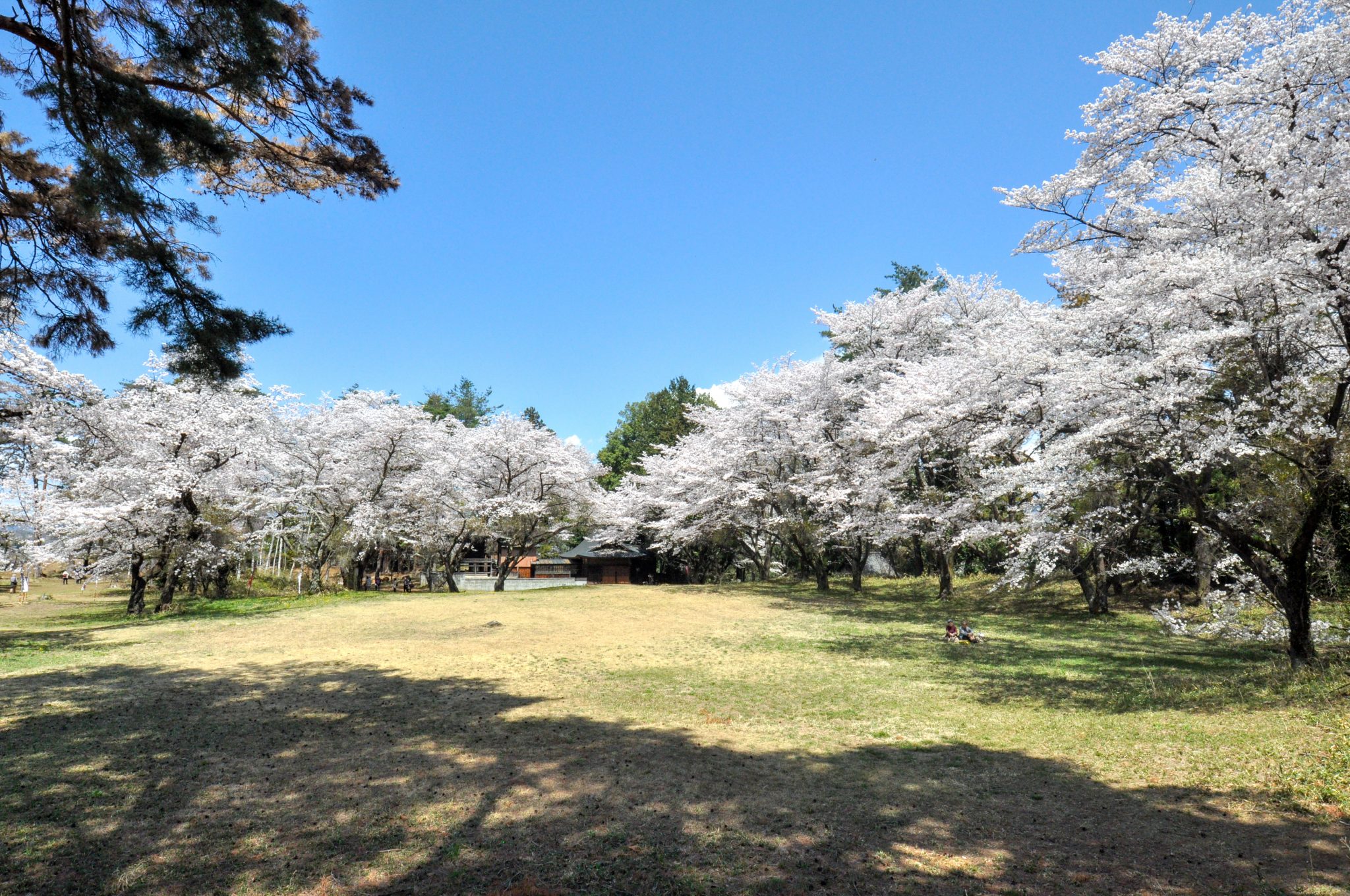 新府といえば桃源郷の桃の花のイメージが強いが、本丸跡付近にある新府藤武神社周辺にはきれいな桜が咲き誇る。