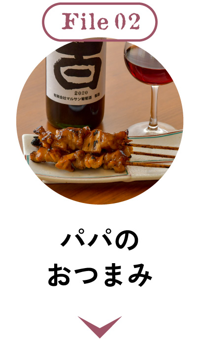 タレでこってり焼いたやきとりの焦げっぽさに、程よい樽香と果実味が味わえるベリーAがよく合う。逆に塩ならスタンダードな白を合わせて。