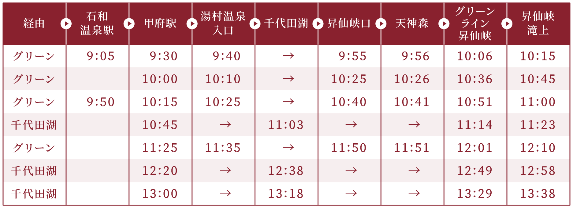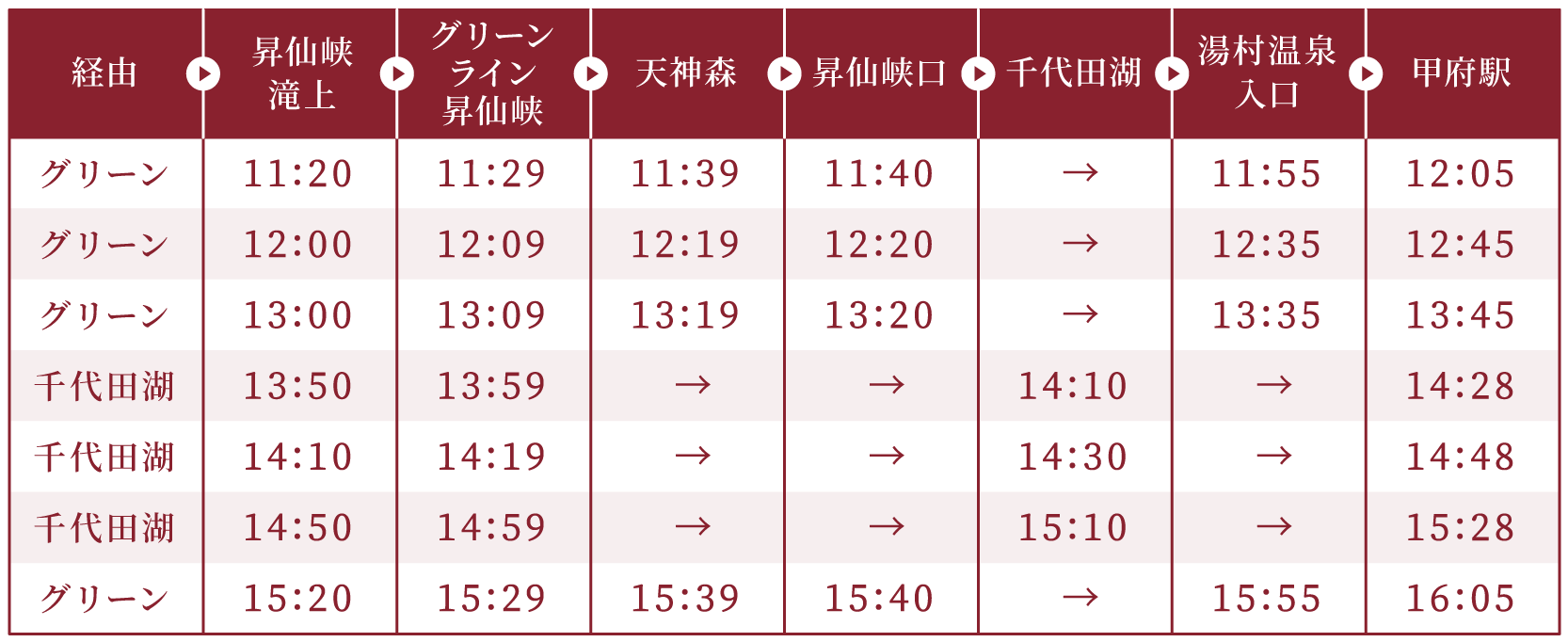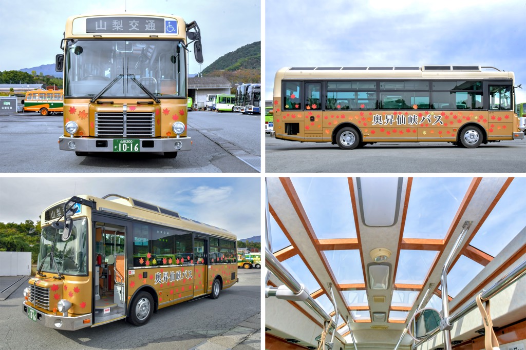 開放的な天窓からは、広い空や真っ赤に染まった紅葉が存分に楽しめる。もみじのデザインをあしらった秋色の専用車両でおでかけしよう。