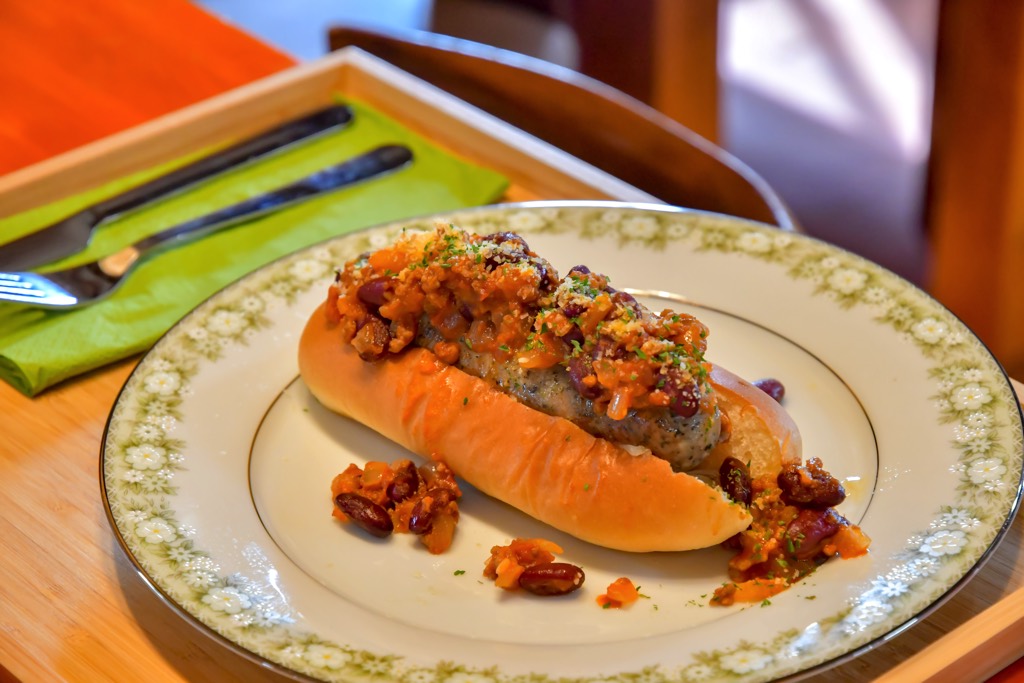 お待ちかねのランチは、オーナーの故郷サンフランシスコの本場の味を再現したという「チリドッグ」。ハーブの効いたジューシーなソーセージに赤いんげん豆を合わせたスパイシーなチリペッパーソースは、ビールとの相性も抜群でどんどんお酒が進む~。