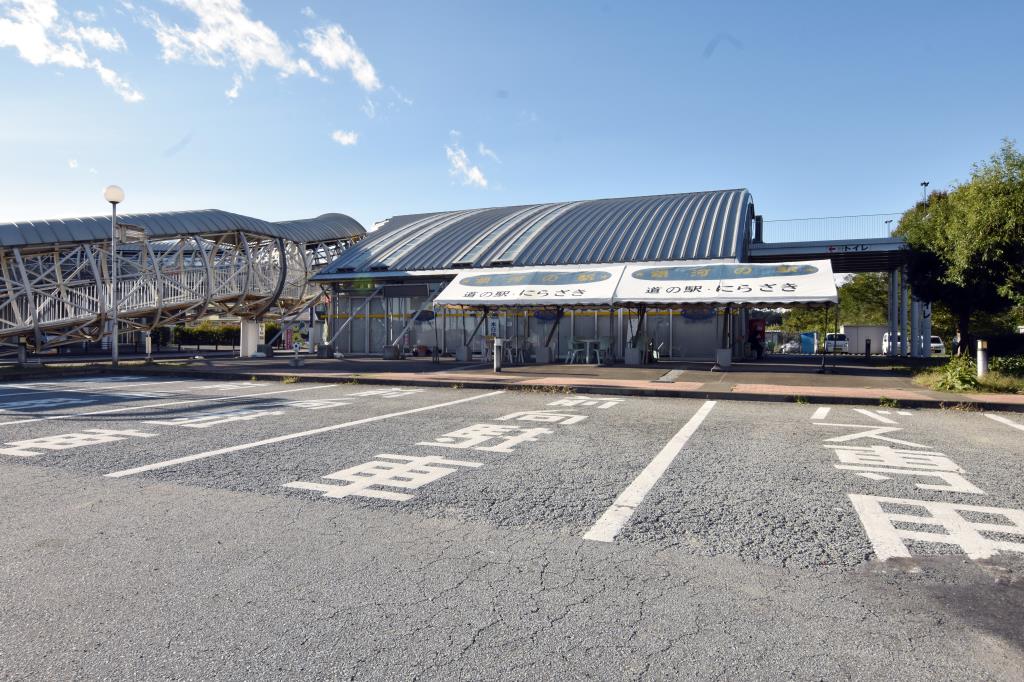 韮崎市中田町中条国道141号をまたぐように掛かる大きな歩道橋が目印の道の駅にらさき。