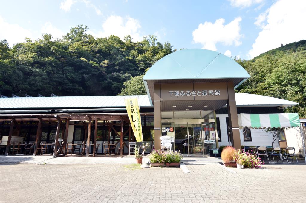 南巨摩郡身延町下山JR身延線下部温泉駅より車で5分、富士川クラフトパーク内にある道の駅みのぶ富士川観光センター。