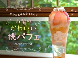 南部よろこび茶食堂では毎年桃パフェが大人気で、山梨県外からも多くのファンが訪れる。