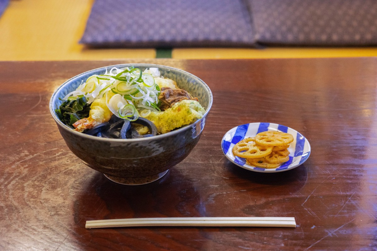 富士吉田市テーブル席の奥には靴を脱いで上がるお座敷もあり、ビジネスマンからファミリー、観光客と幅広いファンから支持を集める人気のうどん屋さん
