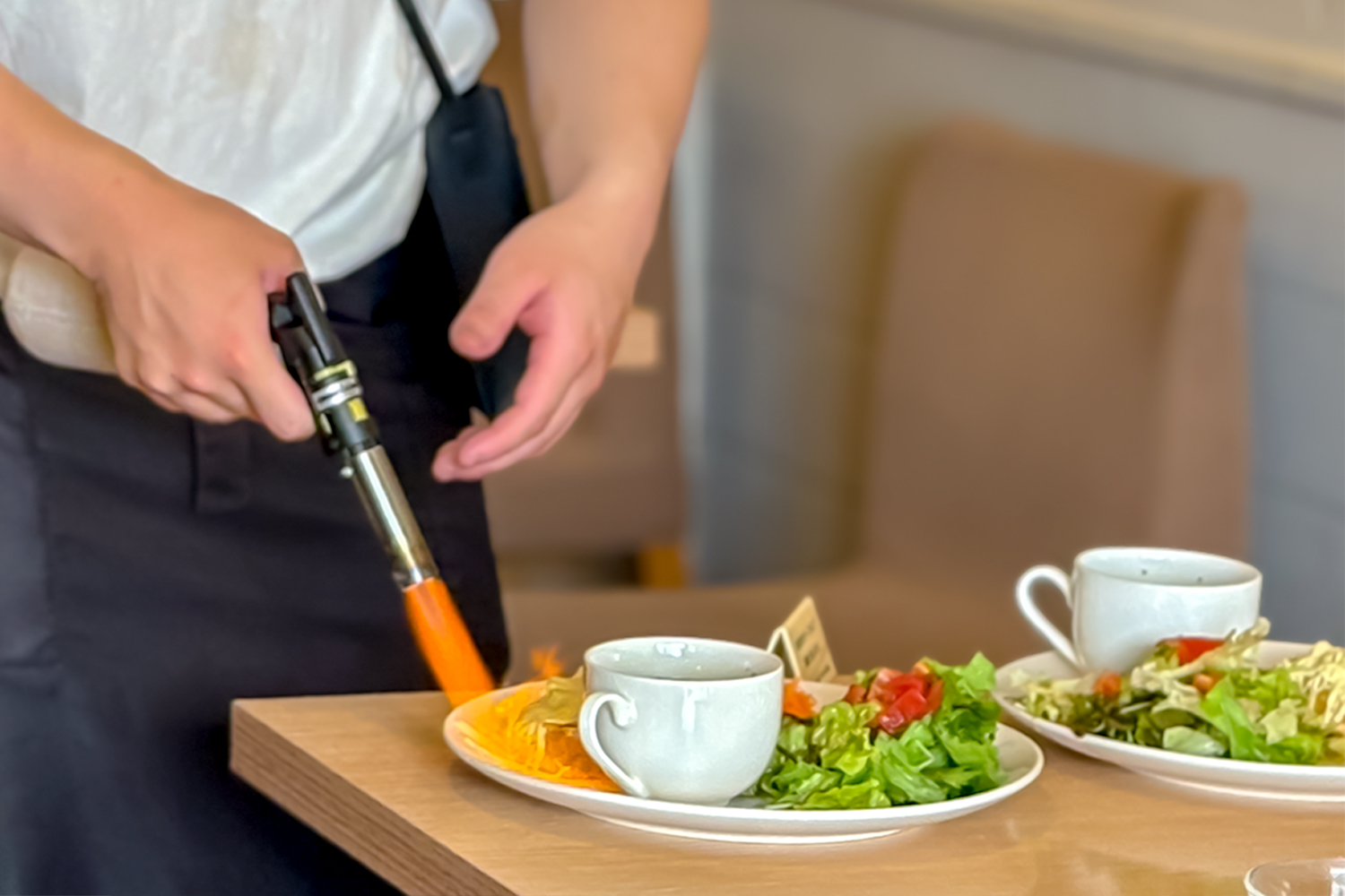 来店時も女性スタッフばかりだったので、薄々予想はしていましたし、面接でもまず言われました。でも、それほど男女差がある職種でもないので、あまり気にはならなかったです。それよりも、自分も飲食店経験がありお客様と話すのがとても好きなので、それ以上にラペのお客様との距離感の近さに魅力を感じました。
