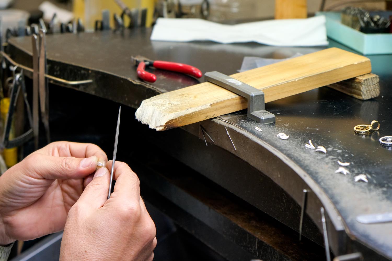 まずは工具の使い方を覚えていただく所から始まり、先輩社員から加工や検品の方法を学びます。