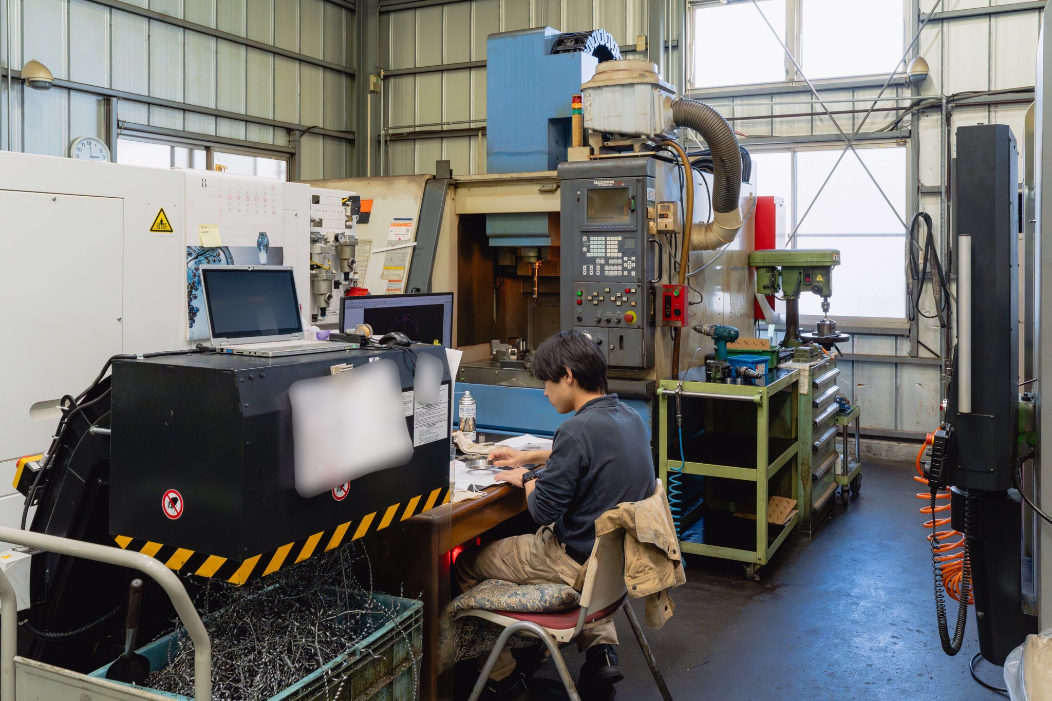 A. 私は、マシニングセンタのオペレーターを担当しています。四角い物、丸物、異形状の物などを加工しています。