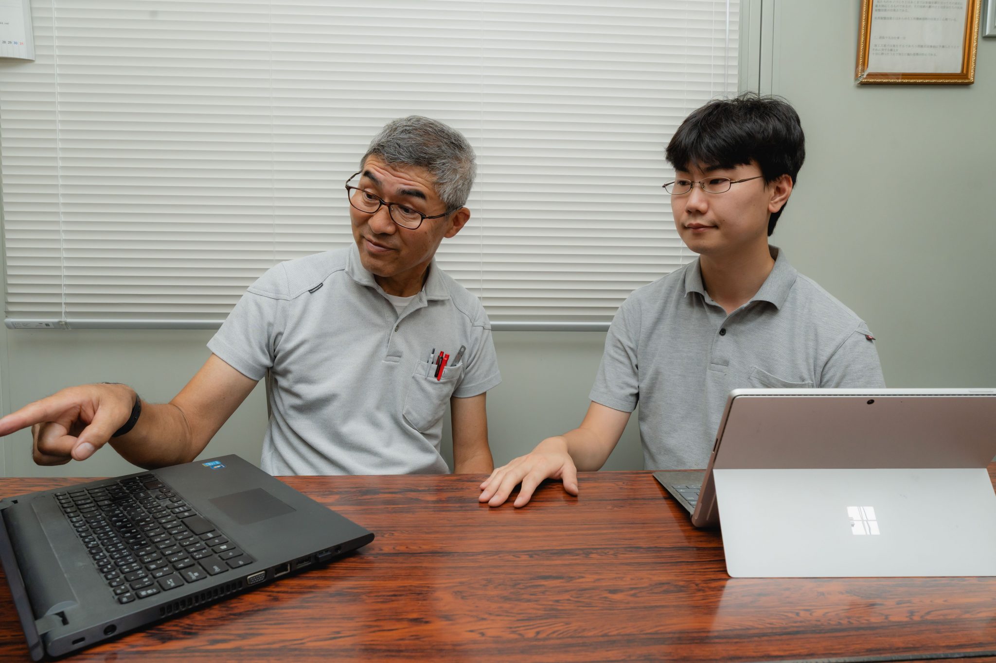 A. ポリテクセンターで勉強をしていたので、求人を見て会社見学に行ってみました。社長と話してみたり、自分が機械を使って加工をするイメージができたので応募しました。