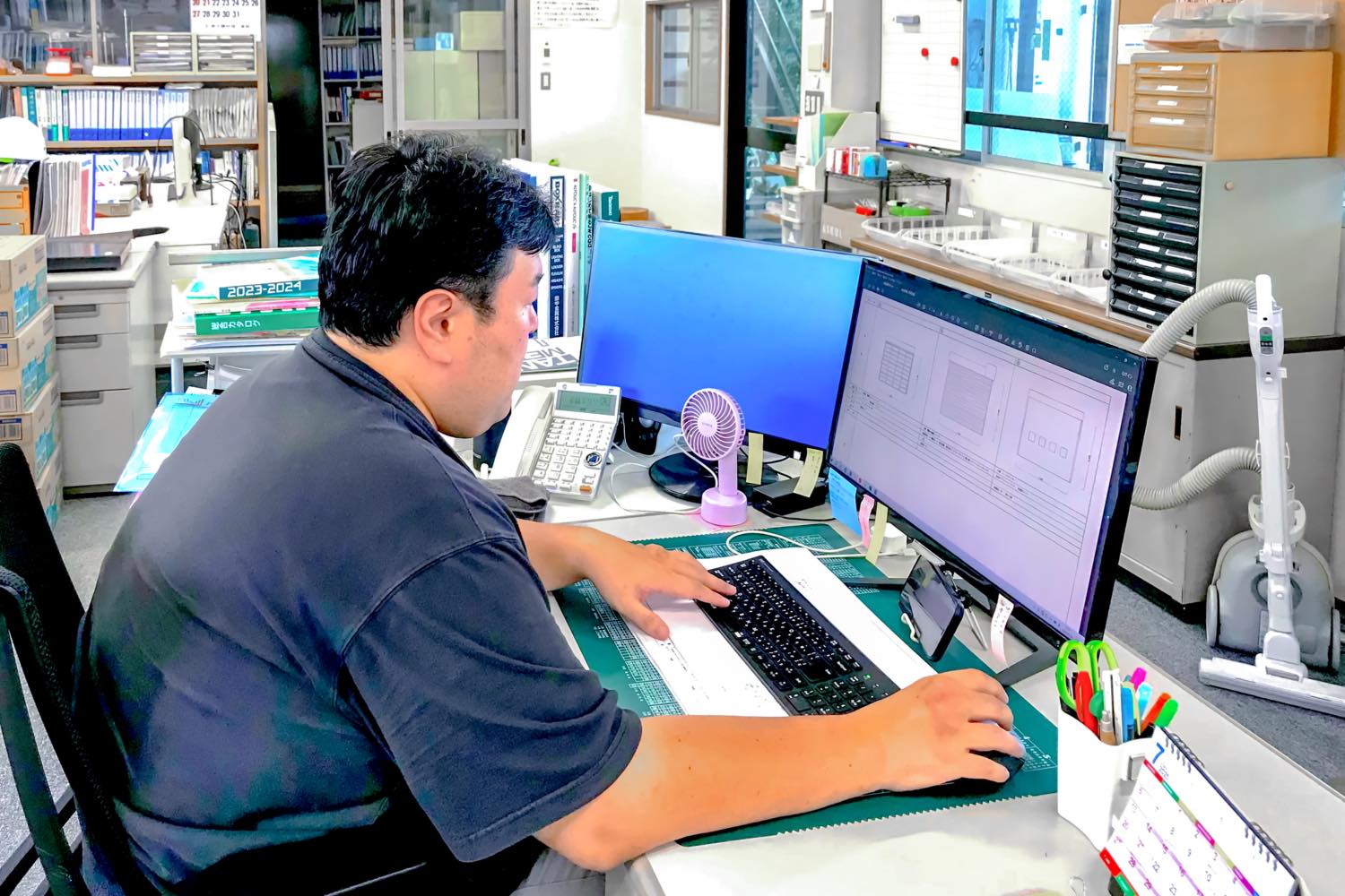 データ入力や書類作成も担当。メーカーの積算システムを使用することもあり、正確さと丁寧さが活かせる職種です。